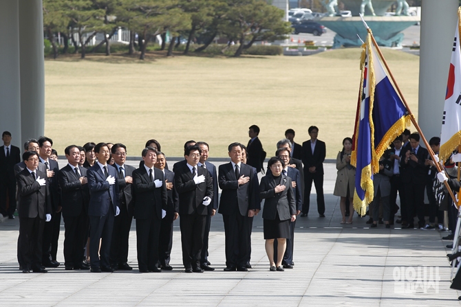 15일 오전 서울 동작구 국립현충원에서 국민의당 안철수, 천정배 공동대표를 비롯한 당 지도부와 제20대 국회의원선거에서 당선된 국민의당 당선인들이 참배를 하고 있다.