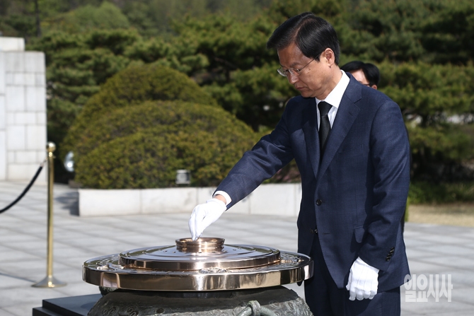 15일 오전 서울 동작구 국립현충원에서 국민의당 안철수, 천정배 공동대표를 비롯한 당 지도부와 제20대 국회의원선거에서 당선된 국민의당 당선인들이 참배를 하고 있다.