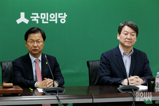 18일 오전 서울 마포구 국민의당 당사에서 열린 국민의당 최고위 회의에서 국민의당 안철수, 천정배 공동대표가 생각에 잠겨 있다.