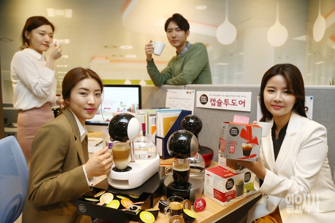 18일 오전 서울 중구 소공동 플라자호텔에서 네스카페 돌체구스토의 직장인들의 합리적인 커피문화를 위한 네스카페 돌체구스토 '캡슐투도어 캠페인' 행사가 열리고 있다.