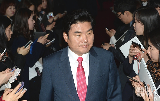 18일, 서울 여의도 국회 의장 접견실에서 예정된 3당 원내대표 첫 회동을 위해 원유철 새누리당 비상대책위원장이 입을 굳게 다문 채로 회동장으로 이동하고 있다.