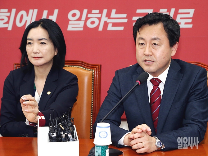 19일, 서울 여의도 국회서 열린 새누리당 원내대표단 회의에서 김용남 의원이 모두발언하고 있다.