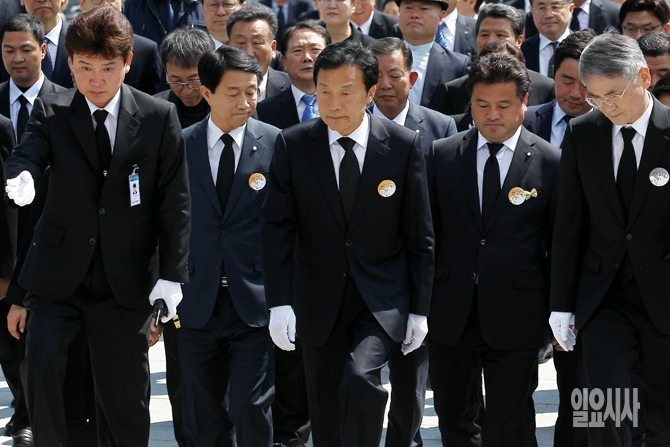 19일 오전 서울 강북구 국립4.19민주묘지에서 열린 제56주년 4.19혁명 기념식 후 손학규 전 더불어민주당 상임고문이 참배를 위해 입장하고 있다.