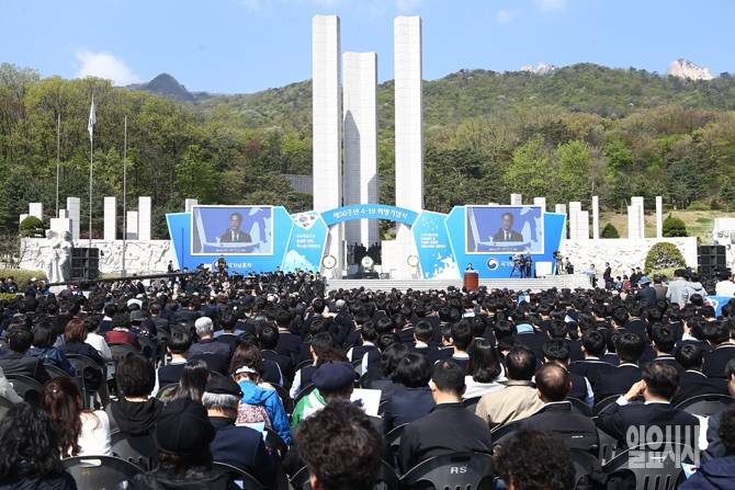 4.19혁명 56주기인 19일 오전 서울 강북구 국립4.19민주묘지에서 제56주년 4.19혁명 기념식이 열리고 있다.