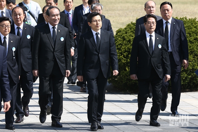4.19혁명 56주기인 19일 오전 서울 강북구 국립4.19민주묘지에서 열린 제56주년 4.19혁명 기념식에 황교안 국무총리가 입장하고 있다.