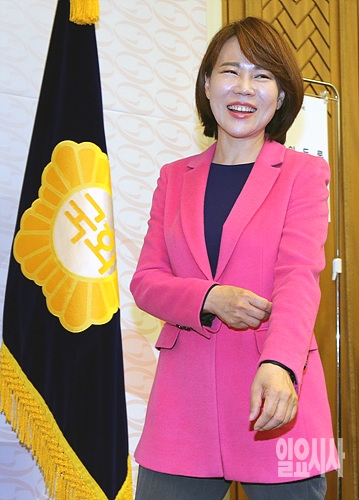 19일, 서울 여의도 국회서 더불어민주당 전현희 의원이 20대 국회 개원종합실 등록을 위해 안으로 들어서며 함박웃음을 짓고 있다.