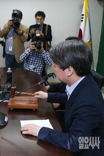 20일 오전 서울 마포구 국민의당 당사에서 열린 국민의당 최고위 회의에서 안철수 국민의당 공동대표가 의사봉을 두드리고 있다.