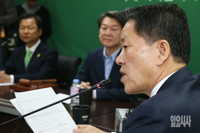 20일 오전 서울 마포구 국민의당 당사에서 열린 국민의당 최고위 회의에서 주승용 국민의당 원내대표가 모두발언을 하고 있다.