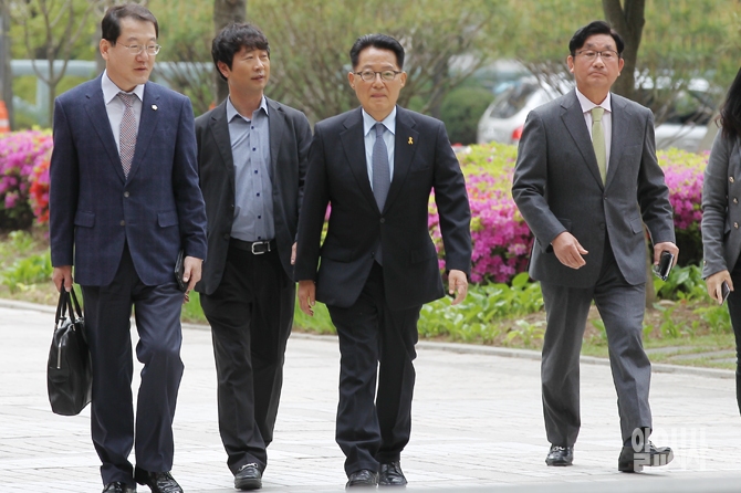 20일 오전 서울 서초구 서울고등법원에서 저축은행 관계자로부터 수천만원을 받은 혐의로 기소돼 대법원에서 무죄취지 파기환송 판결을 받은 박지원 국민의당 의원이 파기환송심 첫 공판이 열리는 법원청사로 향하고 있다.