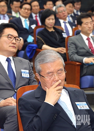 20일, 서울 여의도 국회서 더불어민주당 제20대 국회 당선자대회가 열린 가운데, 김종인 대표가 잠시 눈을 감은 채 생각에 잠겨 있다.