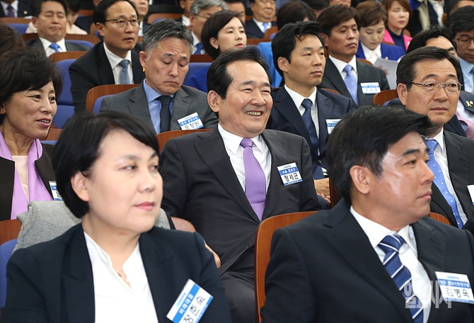 20일, 서울 여의도 국회서 더불어민주당 제20대 국회 당선자대회가 열린 가운데, 서울 종로에서 오세훈 새누리당 후보를 꺾고 연임에 성공한 정세균 의원이 함박웃음을 짓고 있다.