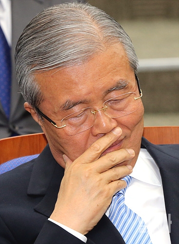 20일, 서울 여의도 국회서 더불어민주당 제20대 국회 당선자대회가 열린 가운데, 김종인 대표가 잠시 눈을 감은 채 생각에 잠겨 있다.