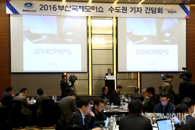 21일 오전 서울 여의도 콘래드호텔에서 2016 부산국제모터쇼 수도권 기자간담회가 열리고 있다.