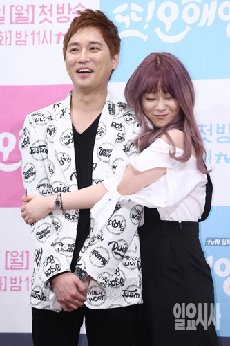 22일 오후 서울 강남구 임피리얼팰리스호텔에서 열린 tvN드라마 <또 오해영> 제작발표회에서 배우 허정민, 허영지가 포토타임을 갖고 있다.
