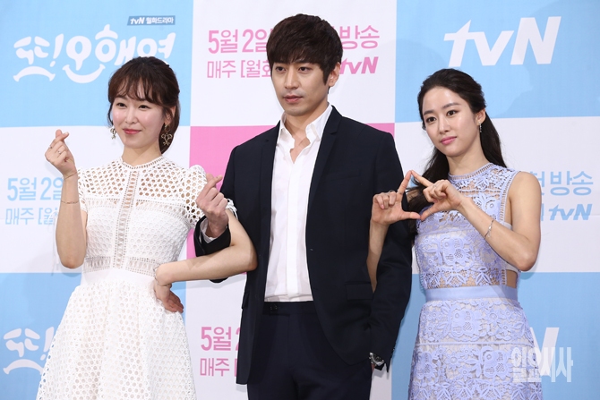 22일 오후 서울 강남구 임피리얼팰리스호텔에서 열린 tvN드라마 <또 오해영> 제작발표회에서 배우 서현진, 에릭, 전혜빈이 포토타임을 갖고 있다.