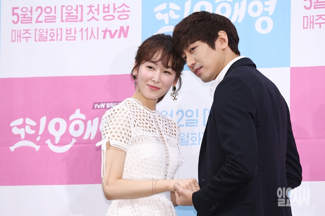 22일 오후 서울 강남구 임피리얼팰리스호텔에서 열린 tvN드라마 <또 오해영> 제작발표회에서 배우 서현진, 에릭이 포토타임을 갖고 있다.
