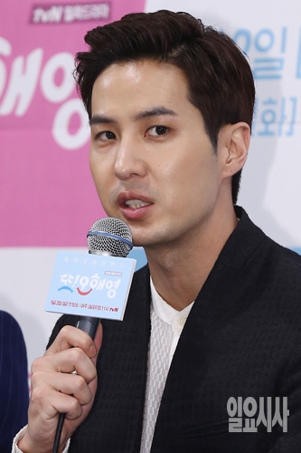 22일 오후 서울 강남구 임피리얼팰리스호텔에서 열린 tvN드라마 <또 오해영> 제작발표회에서 배우 김지석이 인사말을 하고 있다.
