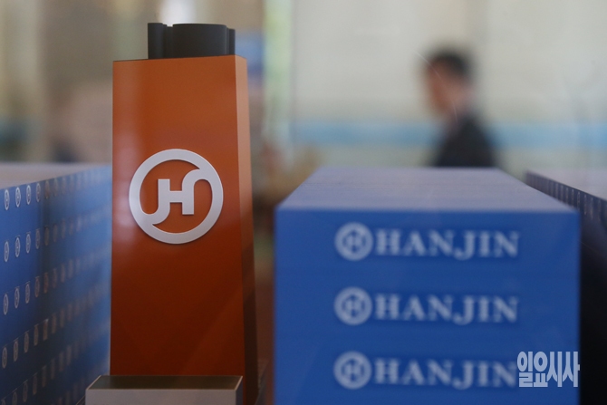 한진해운이 경영정상화 등을 위해 채권단에 자율협약서를 제출한 가운데 25일 오후 서울 여의도 한진해운 본사 로비에 컨테이너선 모형이 전시되어 있다.