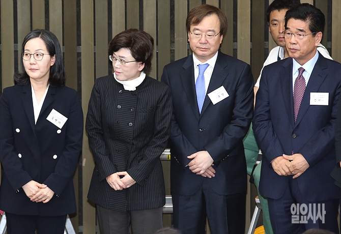 26일, 서울 여의도 국회서 열린 새누리당 당선자 워크숍 도중 김현아, 최연혜 등 비례대표 의원들이 잠시 불편한 표정을 짓고 있다.