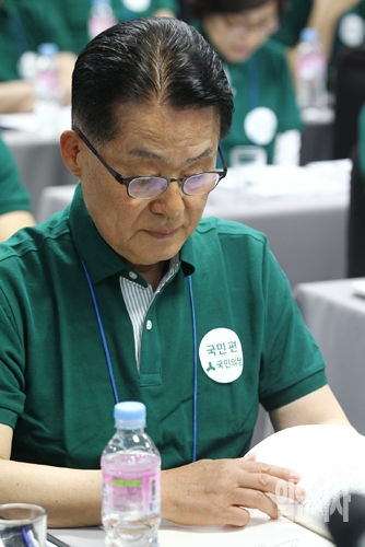 26일 오후 경기도 양평 한화리조트에서 열린 국민의당 제20대 국회의원 당선자 워크숍에서 국민의당 박지원 의원이 워크숍 자료를 보고 있다.