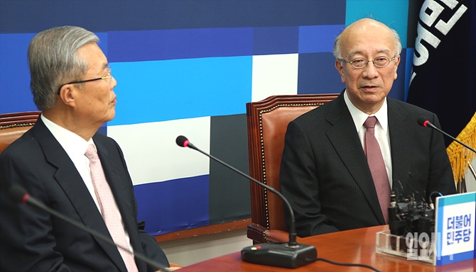 26일, 서울 여의도 국회 더불어민주당 대표실서 벳쇼 코로(別所浩郞) 주한일본대사가 김종인 대표와의 예방 자리에서 발언을 하고 있다.