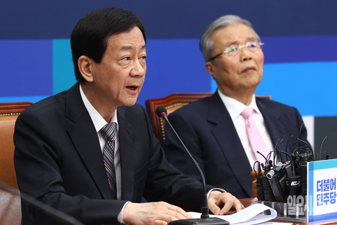 27일 오전 서울 여의도 국회에서 열린 더불어민주당 비상대책위원회의에서 진영 비대위원이 발언을 하고 있다.