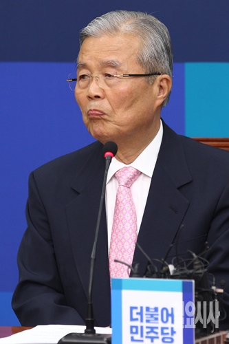 27일 오전 서울 여의도 국회에서 열린 더불어민주당 비상대책위원회의에서 김종인 비대위 대표가 생각에 잠겨 있다.