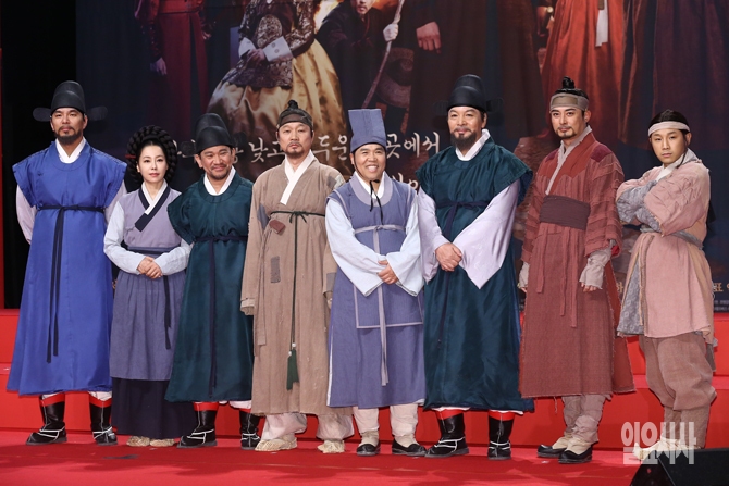 27일 오후 서울 마포구 상암 MBC 미디어센터에서 열린 MBC 새 주말드라마 <옥중화>의 제작발표회에서 배우 최민철, 안여진, 박길수, 주진모, 정은표, 임정하, 이세창, 쇼리가 포토타임을 갖고 있다.