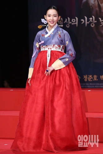 27일 오후 서울 마포구 상암 MBC 미디어센터에서 열린 MBC 새 주말드라마 <옥중화>의 제작발표회에서 배우 윤주희가 포토타임을 갖고 있다.