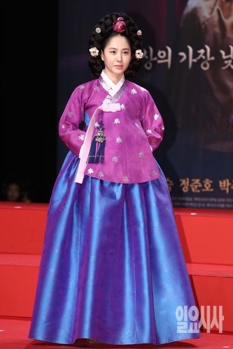 27일 오후 서울 마포구 상암 MBC 미디어센터에서 열린 MBC 새 주말드라마 <옥중화>의 제작발표회에서 배우 박주미가 포토타임을 갖고 있다.
