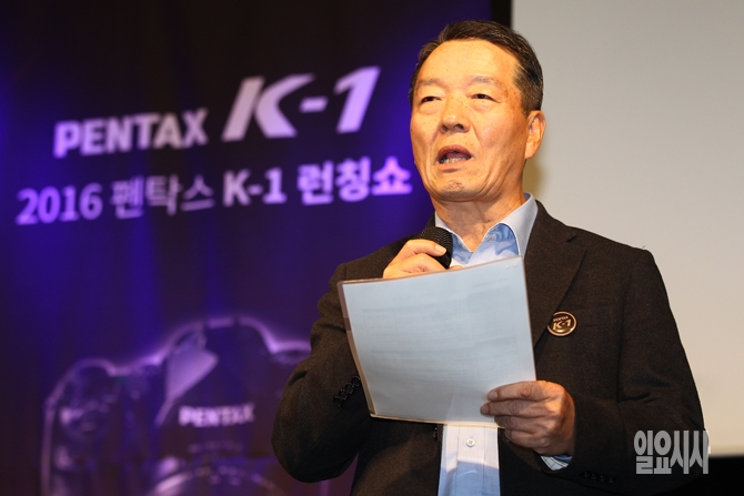 28일 오전 서울 한강 잠원지구 프라디아 컨벤션서 열린 사진영상장비 전문기업 세기P&C의 펜탁스 첫 풀프레임 DSLR 카메라 'K-1' 런칭 행사서 이봉훈 세기P&C 대표이사가 인사말을 하고 있다.