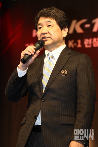 28일 오전 서울 한강 잠원지구 프라디아 컨벤션서 열린 사진영상장비 전문기업 세기P&C의 펜탁스 첫 풀프레임 DSLR 카메라 'K-1' 런칭 행사서 시노부 타카하시 리코이미징 총괄본부장이 인사말을 하고 있다.