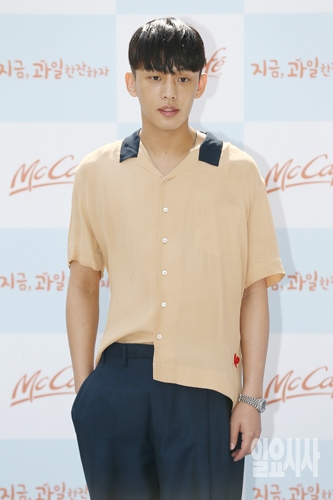 28일 오후 서울 종로구 맥도날드 관훈점에서 열린 맥카페 신제품 스무디 & 프라페 10만잔 판매 돌파 기념 소비자행사에서 맥카페 공식 모델인 배우 유아인이 포토타임을 갖고 있다.