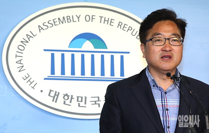 29일, 더불어민주당 우원식 의원이 서울 여의도 국회 정론관서 원내대표 출마 기자회견을 갖고 있다.