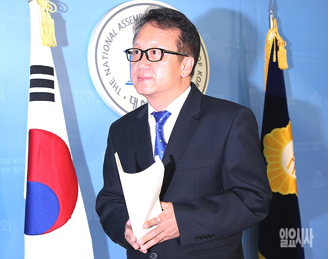 29일, 서울 여의도 국회 정론관에서 더불어민주당 민병두 의원이 원내대표 출마 기자회견 직후 퇴장하고 있다.