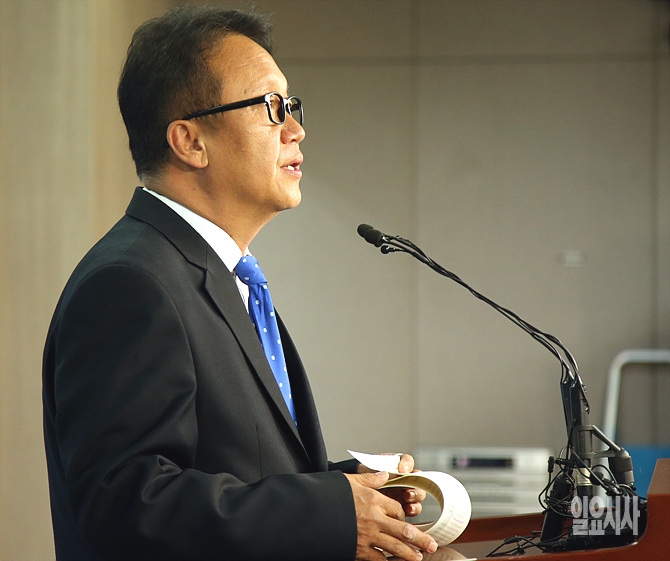 29일, 서울 여의도 국회 정론관에서 더불어민주당 민병두 의원이 원내대표 출마 기자회견을 갖고 있다.