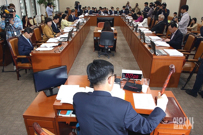 29일, 서울 여의도 국회 보건복지위원회 회의실에서 김춘진 보건복지위원장이 전체회의 개의를 알리는 의사봉을 두드리고 있다.