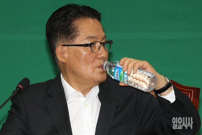 2일 오전 서울 여의도 국회에서 열린 국민의당 최고위원회의에서 박지원 국민의당 원내대표가 물을 마시고 있다.