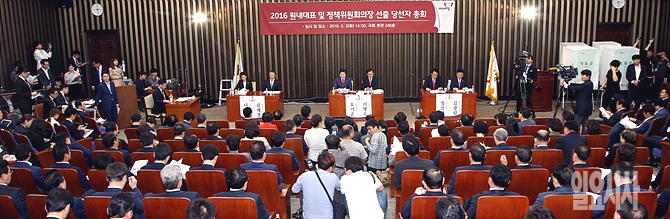 3일, 서울 여의도 국회서 2016 새누리당 원내대표 및 정책위의장 선출 당선자 총회가 열리고 있다.
