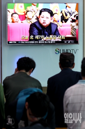 북한이 36년만에 제7회 노동당 대회를 개최한 6일 오전 서울역에서 시민들이 북한 노동당 대회 관련 뉴스를 보고 있다.