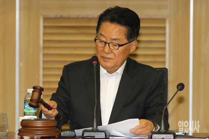 10일 오전 서울 여의도 국회에서 열린 국민의당 당선자 총회에서 박지원 국민의당 원내대표가 의사봉을 두드리고 있다.