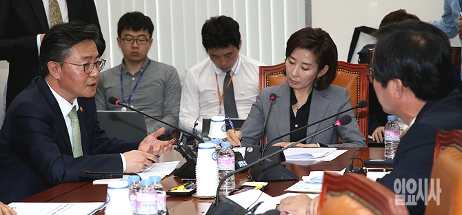 10일, 서울 여의도 국회 외교통상통일위원회 회의실에서 '북한 제7차 노동자대회에 대한 간담회'가 열린 가운데, 홍용표 통일부장관이 발언을 하고 있다.
