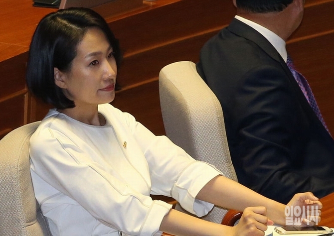 김수민 국민의당 의원이 13일, 서울 여의도 국회 본회의장서 열린 제343회 국회(임시회) 제2차 본회의에서 상임·상설특별위원장 선거 투표를 마친 후 자리로 돌아와 잠시 생각에 잠겨 있다.