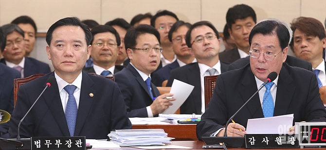 18일, 서울 여의도 국회 법제사법위원회(위원장 권성동, 새누리당) 회의실서 속개된 감사원 등에 대한 국정감사 도중 황찬현 감사원장이 한 의원의 질의에 답변하고 있다.