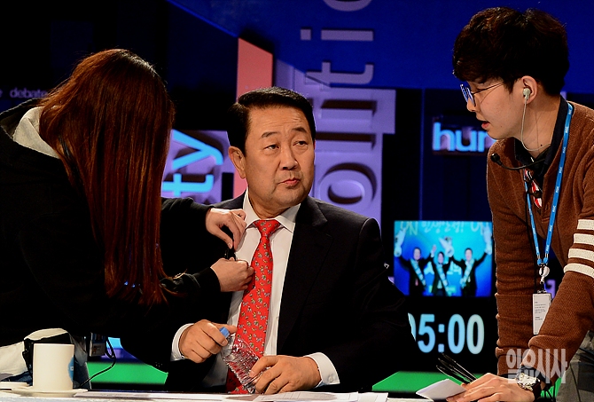 국민의당 대선 경선 후보인 박주선 국회부의장이 30일, 서울 마포구 상암MBC 스튜디오서 예정된 <국민의당 대선 경선 후보 100분 토론>에 앞서 긴장한 듯 물을 들이키고 있다. (국회사진취재단)