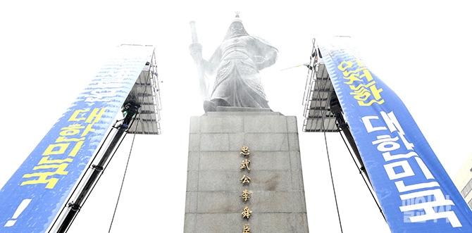 [포토] 안전한 대한민국 기원하는 이순신 장군 동상 친수식