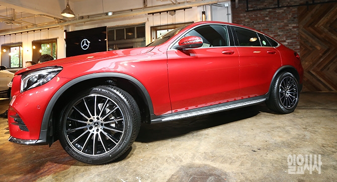 메르세데스-벤츠 코리아가 20일 오전 서울 성동구 어반소스에서 열린 미드 사이즈 SUV쿠페 '더 뉴 GLC 쿠페'를 선보이고 있다.