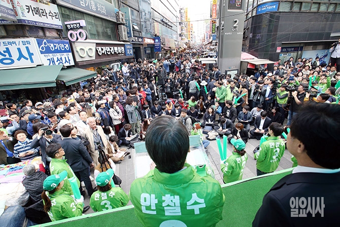 국민의당 안철수 대선후보가 20일 오후 서울 중구 남대문시장에서 열린 집중유세에 참석해 지지를 호소하고 있다.