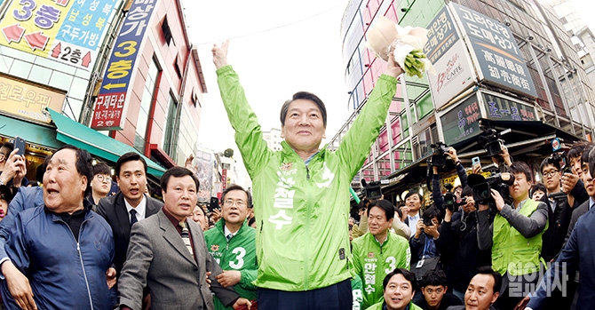 국민의당 안철수 대선후보가 20일 오후 서울 중구 남대문시장에서 열린 집중유세에 참석해 시민들에게 인사를 하고 있다.
