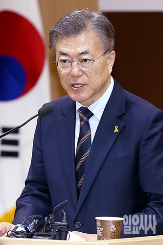 더불어민주당 문재인 대선후보가 21일 오전 서울 용산구 용산 한국여성단체 협의회에서 열린 '모두를 위한 미래, 성평등이 답이다' 대통령 후보 초청 성평등정책 간담회에 참석해 여성정책 발의를 하고 있다.